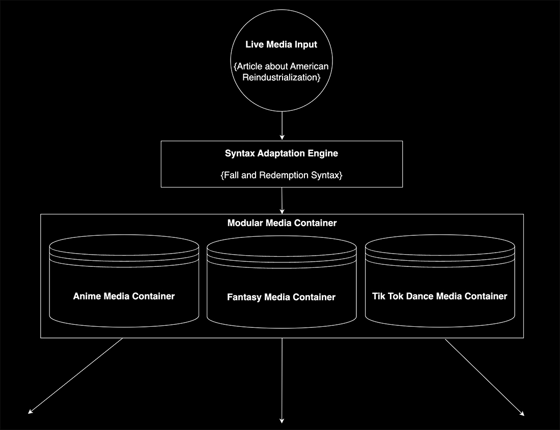 Thumos generates Frames: external, executable symbolic structures that sit above generative models and govern how inputs are interpreted. Frames encode narrative, aesthetic, and symbolic logic once, then persist across models and outputs.